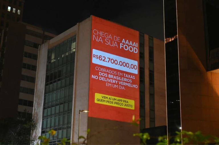 Na noite da segunda-feira, 11, a 99Food promoveu um “taxômetro urbano”. Na prática, a ação projetou em prédios de diferentes pontos da cidade mostrando o valor cobrado por dia em taxas pela plataforma de delivery dominante. A ação foi desenvolvida em parceria com a Pros.